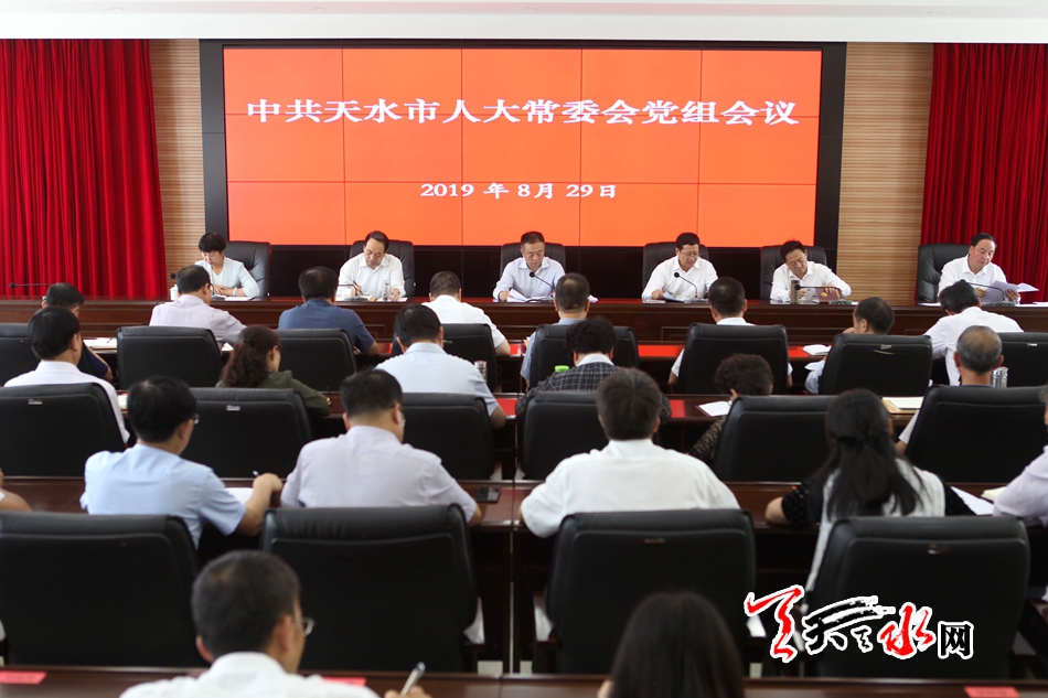 天天天水网讯【全媒体记者马放】8月29日,市人大常委会党组书记蒋晓强主持召开市七届人大常委会党组会议,传达学习习近平总书记视察甘肃重要讲话和指示精神,以及省、市委有关部署要求,安排市人大常委会机关学习宣传贯彻落实工作。市人大常委会党组副书记蒲朝晖,党组成员宋建平、王晓琴、杨坤出席会议,市人大常委会副主任安志宏及机关干部职工列席会议。