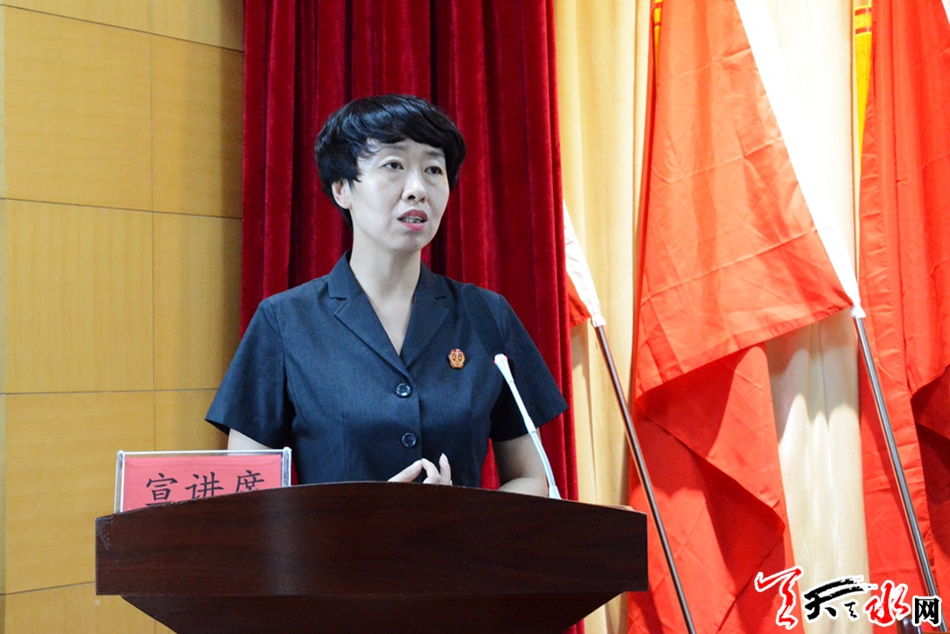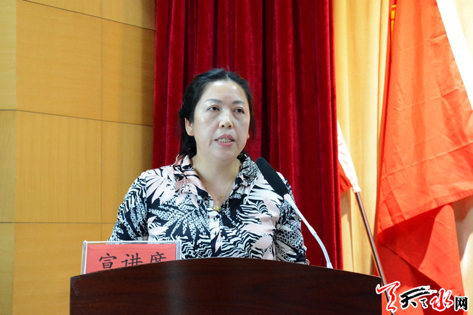 宣讲会上,市妇联主席何忠兰做了讲话;天水菜篮子实业(集团)有限公司董事长王文萍,天水市中级人民法院民事审判第二庭副庭长李兰,武山县妇幼保健院与计划生育技术服务中心主任李海荣三位宣讲员做了宣讲。