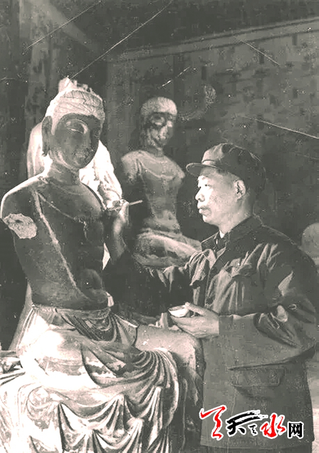 事实上,早在孙纪元1984年来麦积山赴任之前,他就已来过麦积山石窟多次,当时的主要工作是考察指导。其时麦积山石窟并没有专业雕塑人员,能做的修复工作,也只是将受潮快剥落的壁画推回,予以回贴修复等,尽管如此,对于当时的麦积山石窟来说,也已经是文物保护工作迈出的一大步。
