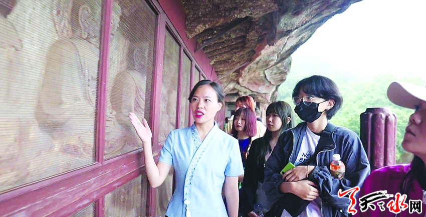 虽然生在天水,但黎泽坤对天水文化不太了解。“小时候我没上过麦积山,所以一开始并没有太大热忱。来这里以后培训了半个月,不同老师为我们讲了很多有趣的知识,有历史人物,也有安全知识。”渐渐地黎泽坤对麦积山中的文物有了一份喜爱,家乡的历史文化底蕴,让她在对游客宣传的时候多了一份自豪感。“很多游客来天水都是奔着麦积山来的,麦积山是天水文化的一个窗口,我作为文化的传播者理应担负起这个责任。”