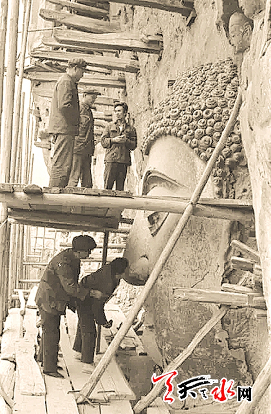 地震发生后,地处地震带的麦积山石窟备受各界关注。国家文物局要求立即对麦积山石窟进行加固维修。“当时共提出三种方案,但都不理想。因时间紧,只能从中择优选择第一种方案,即东崖加固,西崖文物搬迁。方案的下达激起了千层浪,因为从当时的实际来看,方案必定会对文物造成严重损害。”张锦秀回忆说,紧要关头,甘肃省建筑勘察设计院经过勘察测绘提出另外一种方案,彻底改变了原来的观点。这为麦积山石窟加固维修工程的成功奠定了基础。在加固方案设计中,省建筑勘察设计院利用两年时间,完成了全部工段的加固方案设计图和大部工段加固施工设计图。“这与测绘队工程师周鹏程不畏艰险搞测绘有很大关系。”张锦秀说。