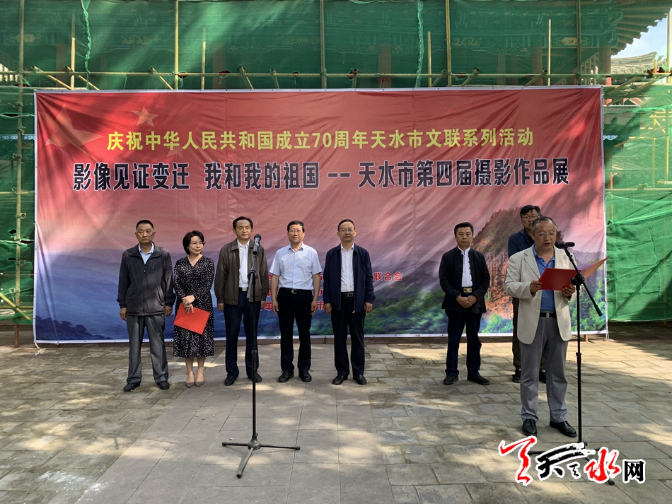 天天天水网讯【全媒体记者 童强】9月6日,由市文联主办,市摄影家协会承办,市文化馆协办的庆祝中华人民共和国成立70周年暨"影像见证变迁.我和我的祖国"天水市第四届摄影作品展在市文化馆开展。市人大常委会副主任蒲朝晖宣布开展,市政协副主席王振宇,市长助理李敬峰出席开展式并观看了展览。