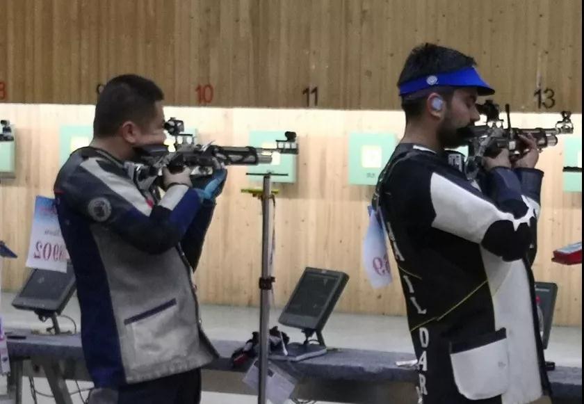50米小口径步枪三姿(跪射、卧射、立射)比赛当日,赛场温度一度达到38摄氏度,周龙飞穿好射击服、调试好枪支,一切准备就绪后等待比赛开始。主裁判下达了开始射击的口令,他扣动扳机,开始了计分射,娴熟的技术让每一次扳机扣动都从容自若,10环、10环……,最终,凭借稳定的心态、高度的专注和丰富的经验,以高出泰国选手1环的成绩夺得50米小口径步枪三姿项目神射手级第一名,为中国队赢得一枚金牌。