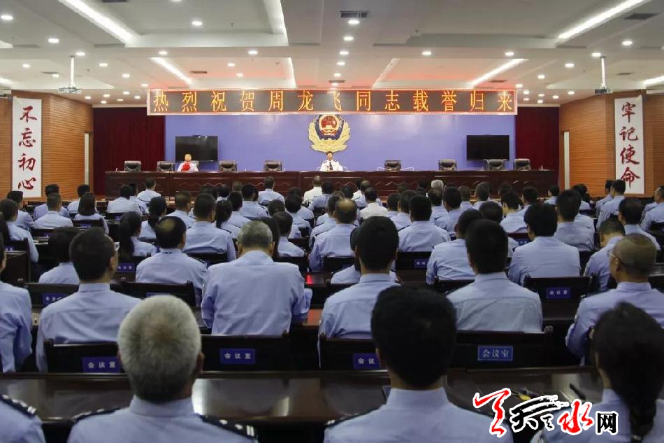 9月4日,天水市公安局召开全体民警大会,祝贺周龙飞参加第18届“世警会”载誉而归。