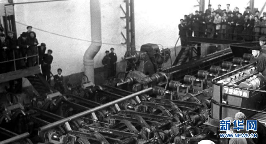 1953年10月27日,中国第一根无缝钢管在鞍山新建的无缝钢管厂试轧成功。新华社记者 李峰 摄
