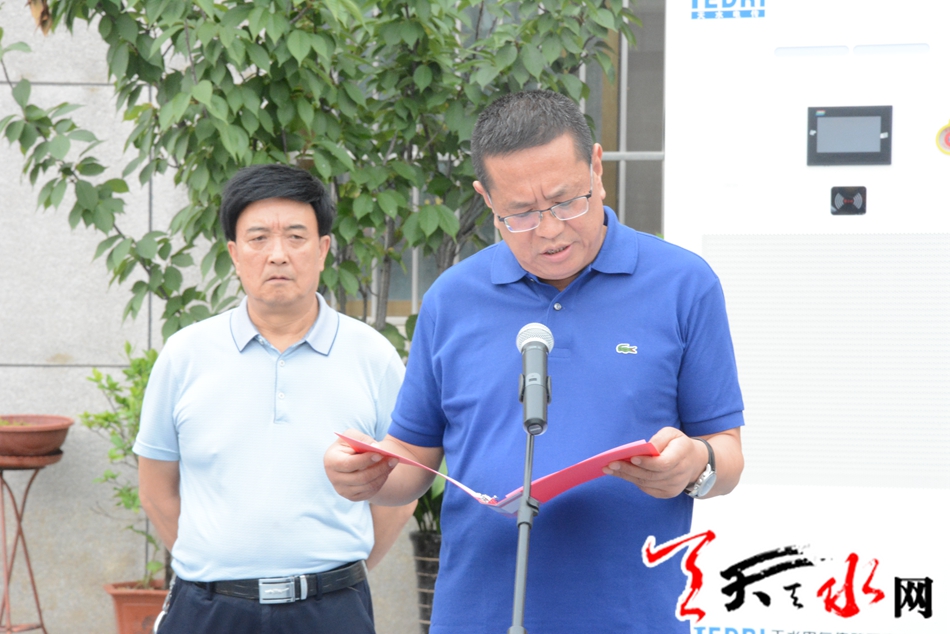 (天水羲通公交旅游集团董事长郭成军介绍天水羲通充电站暨新能源纯电动公交车的基本情况)