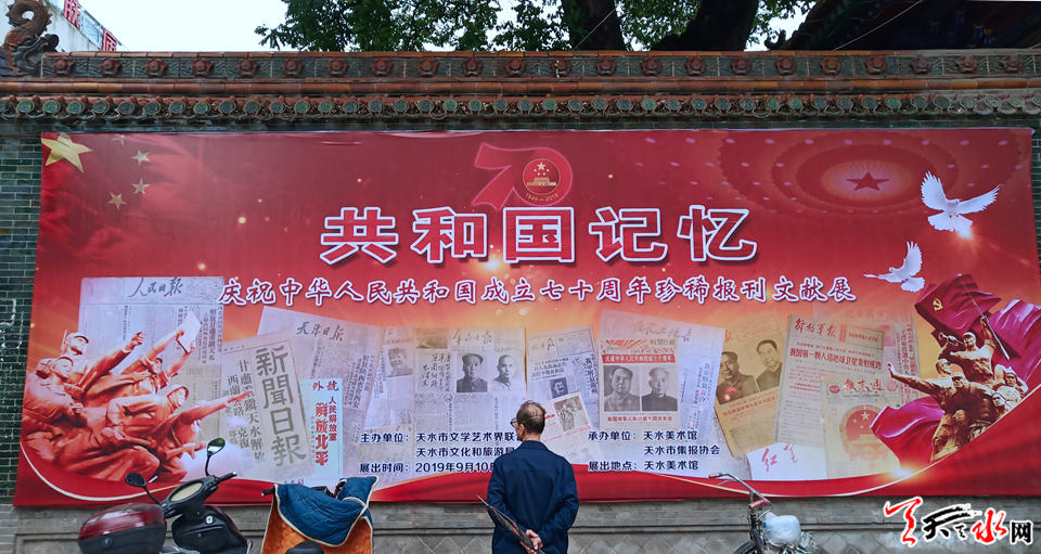 天天天水网讯【记者 张文都 实习生 巩丽珍】9月11日,由天水市文学艺术界联合会、天水市文化和旅游局主办,天水美术馆、天水市集报协会承办的《庆祝中华人民共和国成立七十周年珍稀报刊文献展》在天水美术馆隆重开展。一千多张承载着历史记忆的老报纸向新中国成立七十周年华诞献上了一份厚礼。