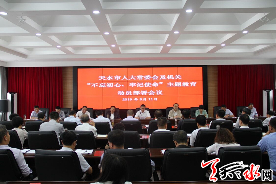 天天天水网讯【全媒体记者马放】9月11日,市人大常委会及机关“不忘初心、牢记使命”主题教育动员部署会议召开。市人大常委会党组副书记、副主任蒲朝晖作动员讲话,市人大常委会副主任安志宏、宋建平、王晓琴,秘书长杨坤以及机关全体党员和干部职工参加会议。市委主题教育专项整治和作风督查组组长、市纪委监委第三派驻纪检监察组组长刘亚军出席指导会议。