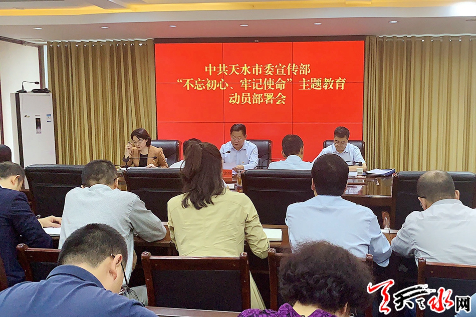 会议传达了全省“不忘初心、牢记使命”主题教育第一批总结暨第二批部署会议精神以及全市“不忘初心、牢记使命”主题教育动员部署会精神,宣读了《中共天水市委宣传部关于开展“不忘初心、牢记使命”主题教育的实施方案》。