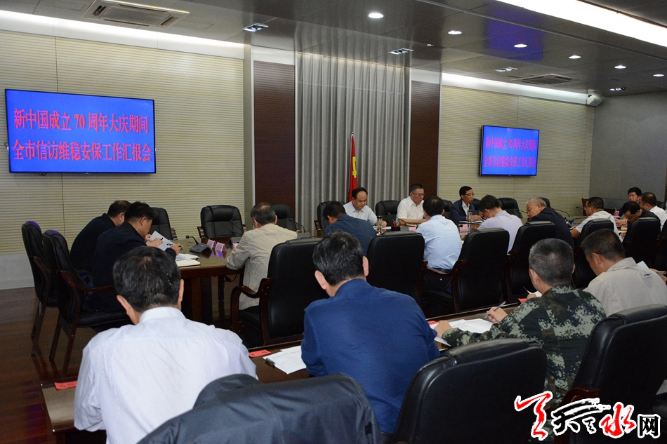 天天天水网讯【全媒体记者马哲】9月11日,市委常委、政法委书记蒲军主持召开新中国成立70周年大庆期间全市信访维稳安保工作汇报会,听取各县区、市直相关部门工作情况汇报,并就进一步贯彻落实全省、全市新中国成立70周年大庆信访维稳安保工作动员会议和市委国家安全委员会专题会议精神,防范化解重大风险隐患,全力做好新中国成立70周年大庆期间信访维稳安保工作进行全面安排部署。