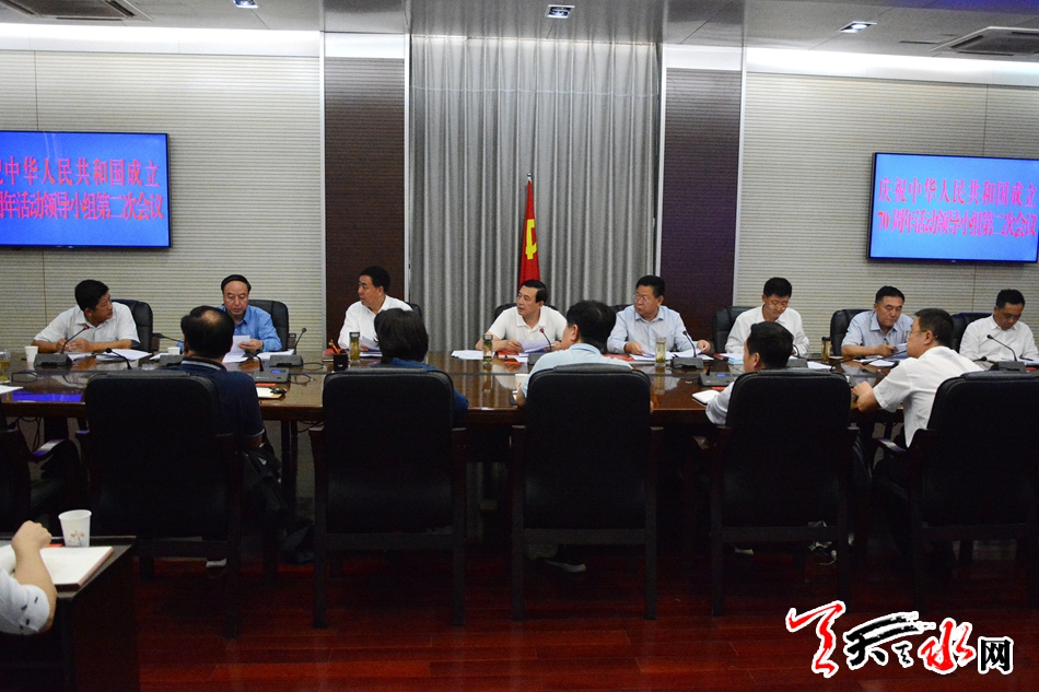 会议审议了《天水市向革命烈士敬献花篮仪式实施方案》《天水市举行升国旗仪式实施方案》《天水市开展走访慰问活动方案》等8个方案,就做好全市庆祝中华人民共和国成立70周年活动准备工作作了进一步安排部署。