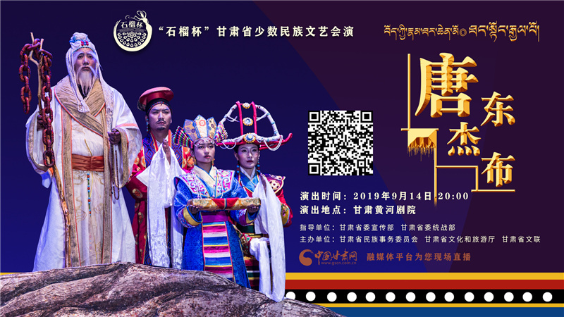 中国甘肃网9月12日讯(中国甘肃网记者 张珊珊)由甘肃省民族事务委员会、甘肃省文化和旅游厅、甘肃省文学艺术界联合会共同主办的,庆祝中华人民共和国成立70周年“石榴杯”甘肃省少数民族文艺会演于9月12日起在兰州拉开帷幕,其中,大型安多南木特藏戏《唐东杰布》将于14日晚8时亮相黄河剧院,届时,中国甘肃网将全程进行网络直播。