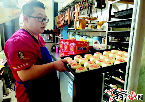 成立于上世纪五十年代初的天水食品厂,是一个“老字号”的国有食品加工企业,其生产的蛋糕、点心、酱类制品至今仍是很多天水市民认可的心头好。2002年改制后,食品厂更名为天水陇香食品有限公司,中秋前正是他们赶制月饼最忙的时候。食品部主任郑红说,天水以及周边地区还是很认可他们这个“老字号”。“我们平时是下午五点半下班,做月饼的这段时间中午都不休息,下午四点半下班。我们的月饼现在依然是手工制作,只不过以前是木质模具,现在是塑料模具。为了保证多年来的传统味道,公司每年都会聘请70岁以上的老技术工人来单位现场指导、监督。”