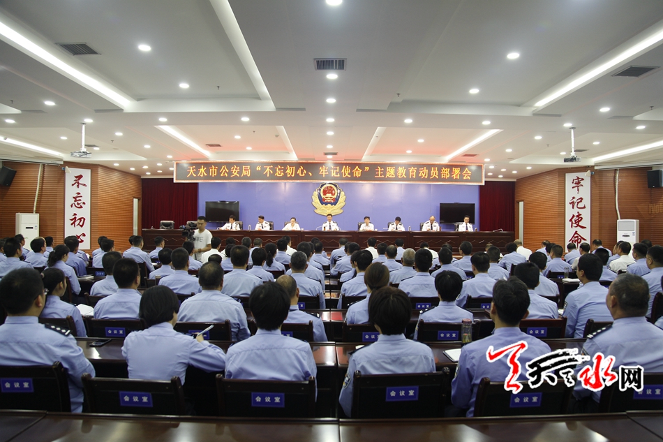 天天天水网讯【记者景春燕】9月12日,市公安局召开“不忘初心、牢记使命”主题教育动员部署会,深入学习贯彻习近平总书记在“不忘初心、牢记使命”主题教育工作会议上的重要讲话精神,传达全市主题教育动员部署会议精神,对全市公安机关开展“不忘初心、牢记使命”主题教育进行动员部署。市委指导联络组组长陈伟彬、市委第四指导组成员杜露到会指导。副市长、市公安局局长马瑛出席会议。