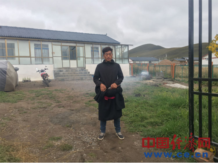 图为罗藏贡去乎在新房外。经济日报-中国经济网记者 梁木 摄