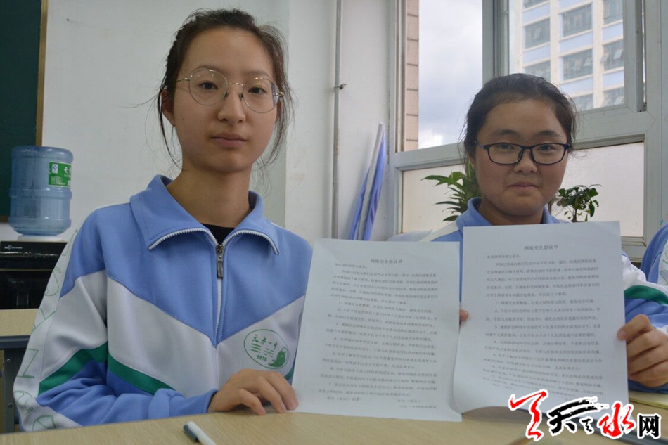在校园日当天,这样的主题班会也在天水市实验小学、天水市逸夫实验中学、天水市职业学校等学校同步举行。通过网络安全讲座、知识竞赛、手抄报比赛、校园展板宣传等形式,帮助学生树立正确的网络管理经验,提高安全防范意识。