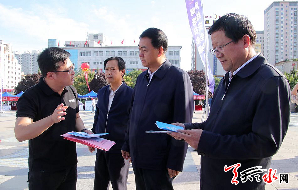天天天水网讯【记者李旺旺】9月20日,2019年国家网络安全宣传周天水市集中宣传展示活动在龙城广场举行。市委副书记赵卫东、市人大常委会副主任蒲朝晖、副市长逯克宗现场察看了宣传展示活动。