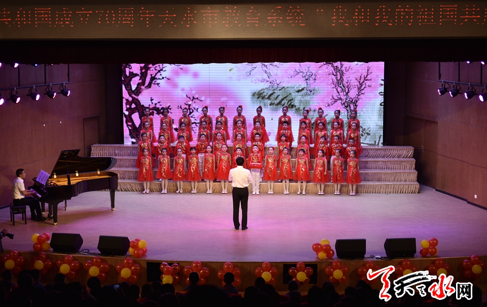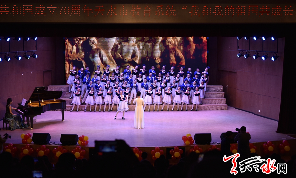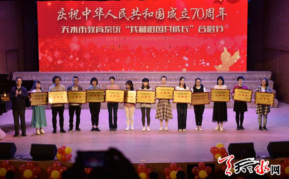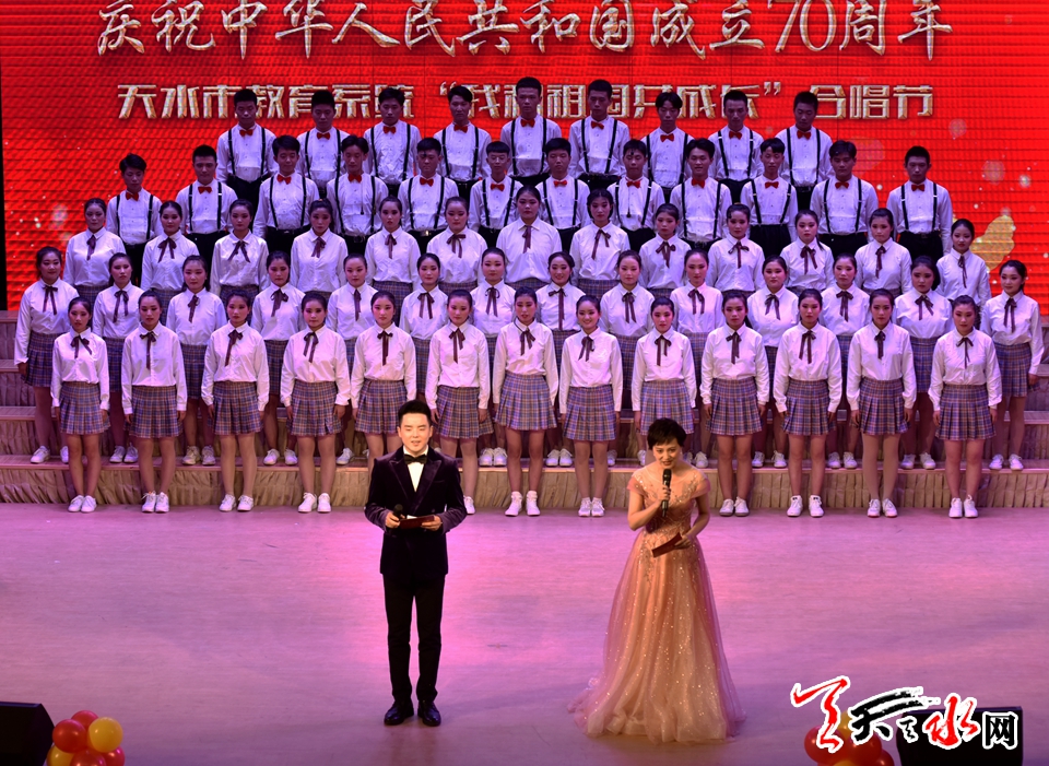 天天天水网讯(记者何永德)歌声飞扬,吟唱70年难忘岁月。9月22日,由天水市教育局主办,天水市青少年校外活动中心、天水市合唱协会承办,天水师范学院音乐舞蹈学院协办,庆祝中华人民共和国成立70周年天水市教育系统“我和祖国共成长”主题合唱节颁奖典礼在天水师范学院隆重举行。