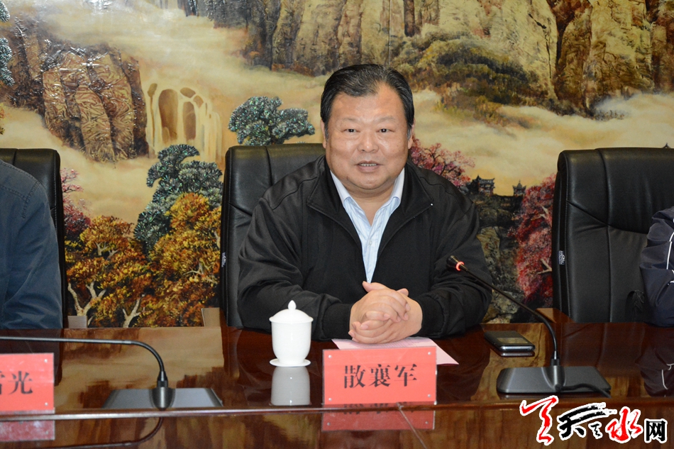 散襄军在签约仪式上讲话,他指出这次项目正式签约,标志着天津甘肃两地合作进入了一个新的起点,天津市慈善协会将按照天津市委市政府的部暑要求,进一步加强沟通联系,突出需求导向,动员天津市各方面力量,全力落实帮扶责任,推动两地经济社会和慈善事业发展,助力甘肃打赢脱贫攻坚战。