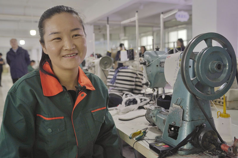 在巾帼扶贫车间工作的朱小红,每个月能靠布鞋加工获得四千余元的收入。而在工作之前,她的生活几乎全部围绕“务农、家务”展开。在朱小红看来,这份工作不仅仅给了自己经济收入,也让自己更加自信。“妇女能顶半边天”原来她只是听别人说过、在电视上看见,如今她自己真正做到了。