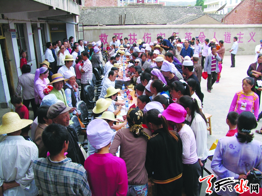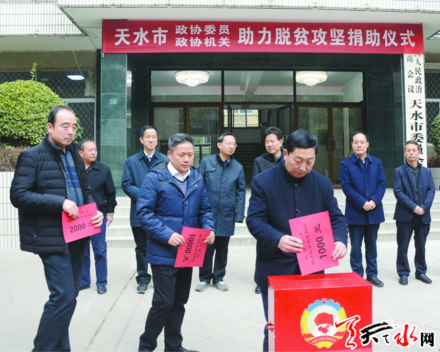 ▲天水市政协组织政协委员及机关干部职工开展助力脱贫攻坚捐助活动。