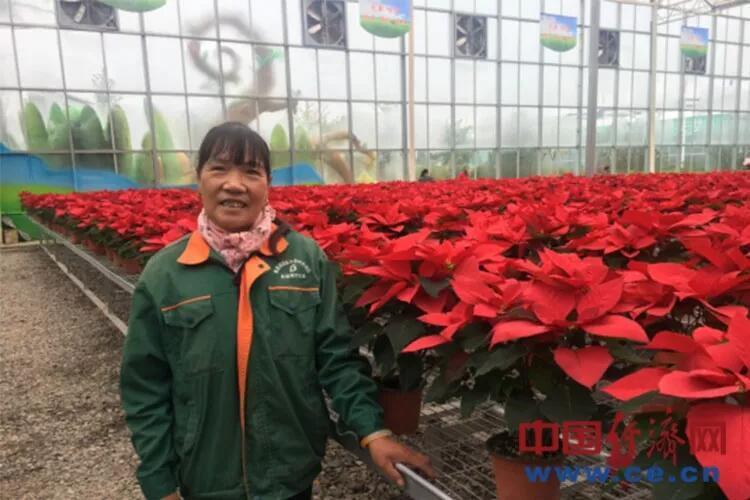 先锋乡前韩村的宋梅个今年50岁,现在每天的工作就是打理大棚内的花卉,栽花、施肥、浇树……