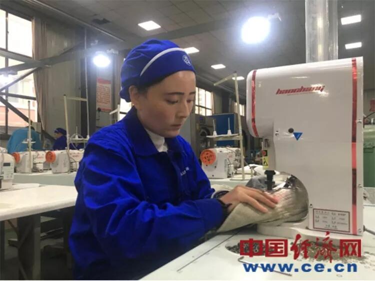 马哈力麦每天坐大巴客车来上班,同村有十多人都在车间工作。“当时村里通知招工,我们就来了。有了这个厂子,村子里的媳妇们都有活干了。”马哈力麦说道。