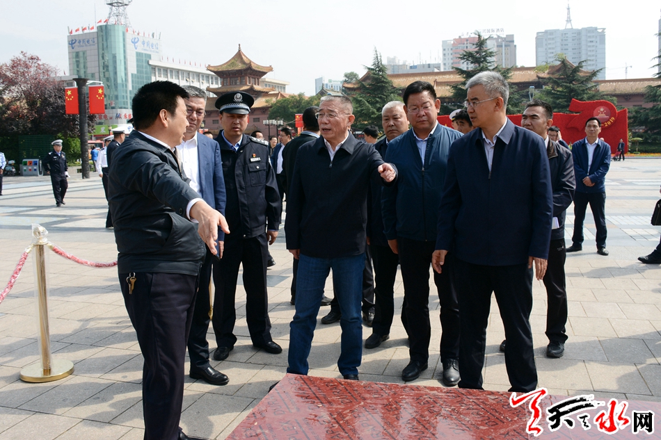 天天天水网讯【全媒体记者 王晓馨】9月24日上午,市委书记王锐带领市委办、市委宣传部、市委政法委、市信访局及公安、武警、应急管理、消防救援、供电等部门,对全市庆祝新中国成立70周年重点活动维稳安保工作进行了督查调研。他强调,庆祝新中国成立70周年是党和国家政治生活中的大事,全市各级各部门要提高政治站位,高度重视新中国成立70周年大庆重点活动维稳安保工作,确保活动顺利圆满举行。