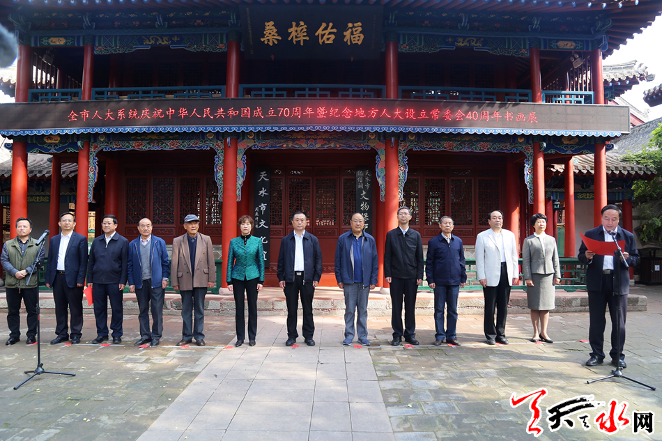 天天天水网讯【全媒体记者马放】为庆祝中华人民共和国成立70周年和纪念地方人大设立常委会40周年,赞颂新中国成立70年来的辉煌巨变,宣传人民代表大会制度,弘扬爱国主义精神,反映全市民主法治建设和经济社会发展成就,由市人大常委会办公室举办的以“讴歌新时代、展示新风采”为主题的全市人大系统庆祝中华人民共和国成立70周年暨纪念地方人大设立常委会40周年书画展,9月24日上午在市文化馆开展。