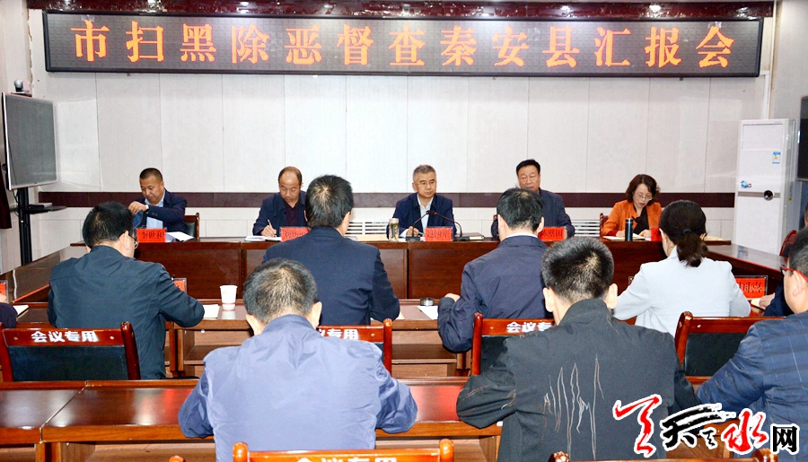 在秦安县扫黑除恶专项斗争汇报会上,赵四辈听取了秦安县就反馈问题的整改落实情况以及相关案件办理进展情况。