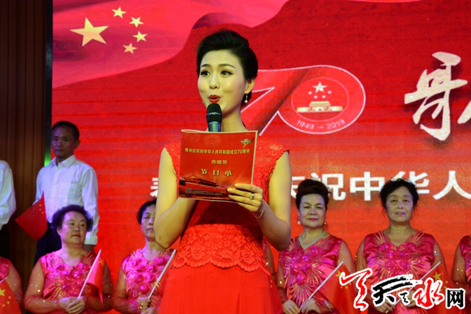 天天天水网讯(见习记者 罗馨 实习生 巩丽珍)在新中国成立70周年来临之际,在全社会营造讴歌祖国、共筑复兴伟业的浓厚氛围中,9月25日上午,由秦州区委组织部、区委宣传部主办,秦州区委老干部事物服务中心、区总工会、区教育局承办的“歌唱祖国”秦州区庆祝中华人民共和国成立70周年合唱节”在金华大厦举行。