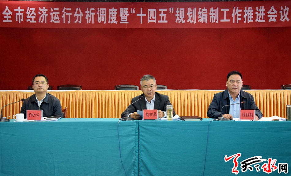 天天天水网讯(全媒体记者 李欣桐)9月25日,市委常委、常务副市长赵四辈主持召开全市经济运行分析调度暨“十四五”规划编制工作推进会,分析研判当前经济运行形势和存在的困难问题,安排部署下一阶段稳增长重点任务和“十四五”规划编制工作。