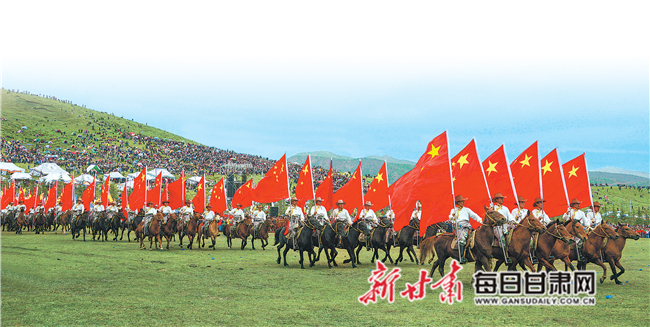 今年“一会一节”开幕式在甘南州合作市举办。鲜艳的国旗、昂扬的马队、翠绿的草原,构成一幅和谐向上的美丽画卷。本文图片均由甘南州委宣传部提供