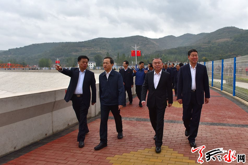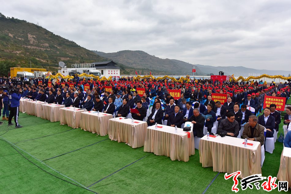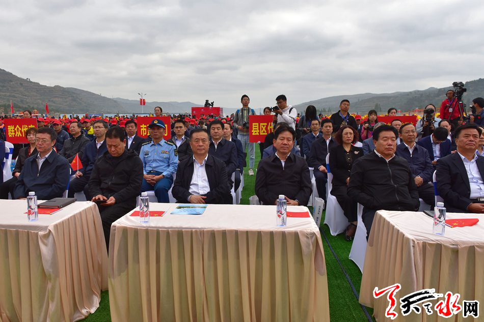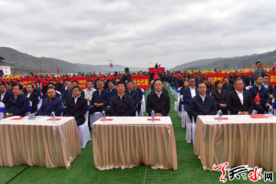 省委常委、副省长周学文,省人大常委会党组书记、副主任王玺玉,省政协副主席、天水市委书记王锐,省委副秘书长王春江,省人大常委会副秘书长、办公厅主任马森,省水利厅厅长霍卫平,省水利厅党组书记、副厅长朱建海,省水务投资有限责任公司党委书记、董事长徐崇锋,人民日报社甘肃分社社长董洪亮,中央广播电台总台央广甘肃记者站站长孟永辉,省财政厅副厅长郝文杰,市领导蒋晓强、张明泰、赵卫东、蒲军、雷鸣、温利平、赵四辈、刘骁、张建杰、刘甫清等出席通水仪式;退休老干部李世荣、王志荣、宋敬国等应邀出席通水仪式。