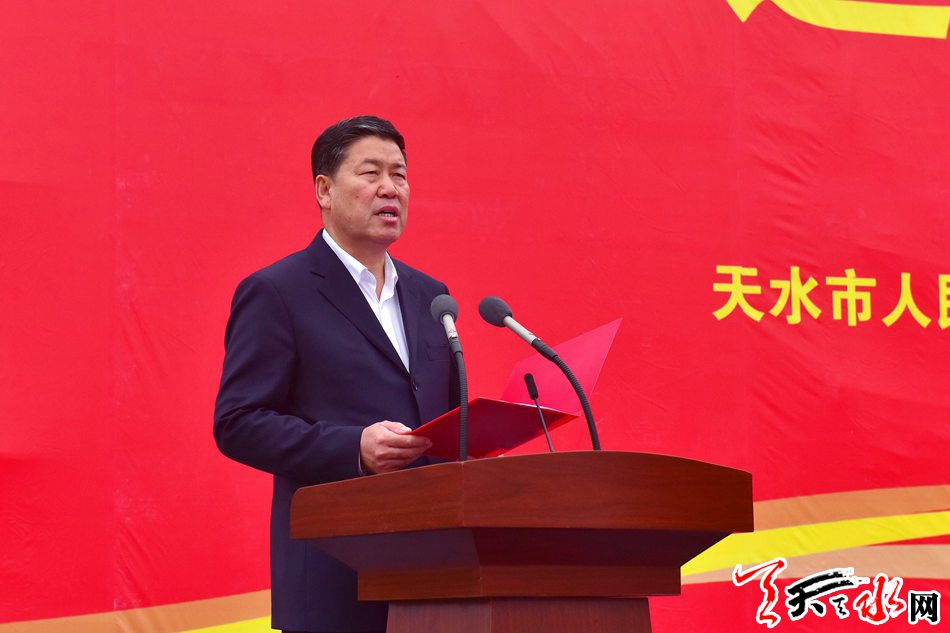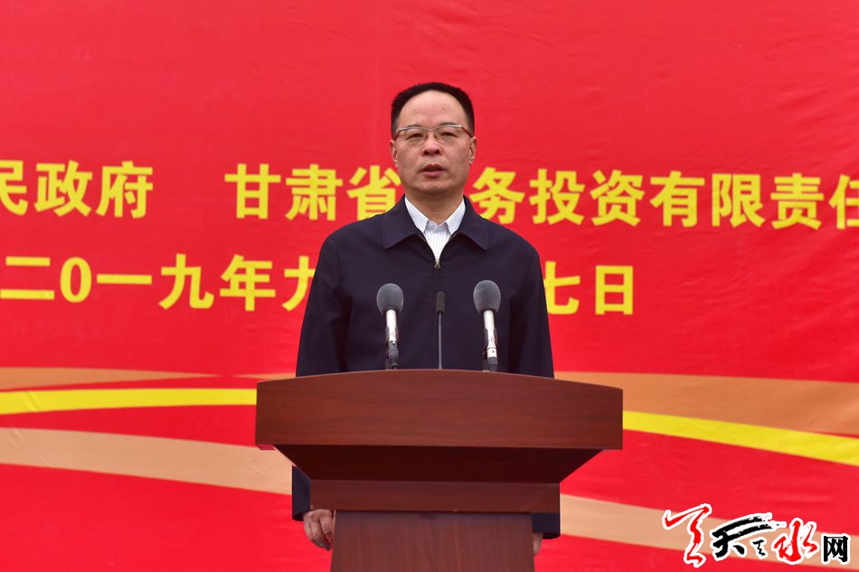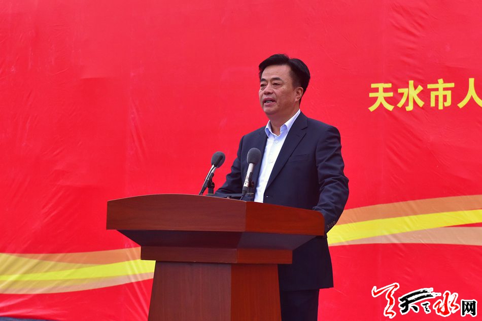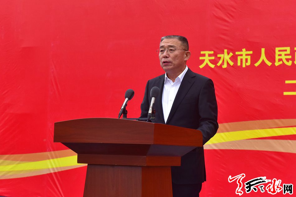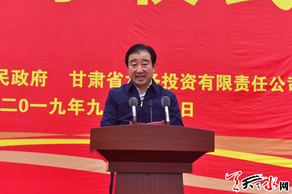 霍卫平在通水仪式上讲话。他说,天水市城区引洮供水工程是引洮工程的延伸和有机组成部分,是实现引洮工程效益最大化的具体体现。希望天水市和省水投公司通力协作,科学合理确定供水水价,健全规章制度,加强工程运行管护,为持续、稳定、安全供水提供有力保障。同时加快甘谷、秦安两县引洮二期配套城乡供水工程建设,确保工程顺利实施、早日建成运行,为天水市经济社会发展提供坚实的水资源支撑保障。