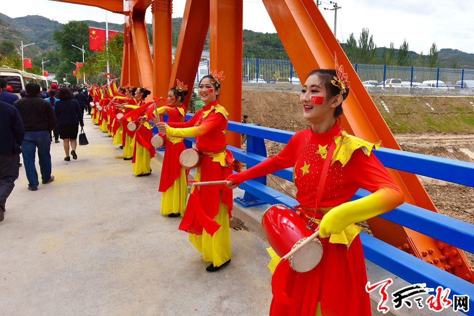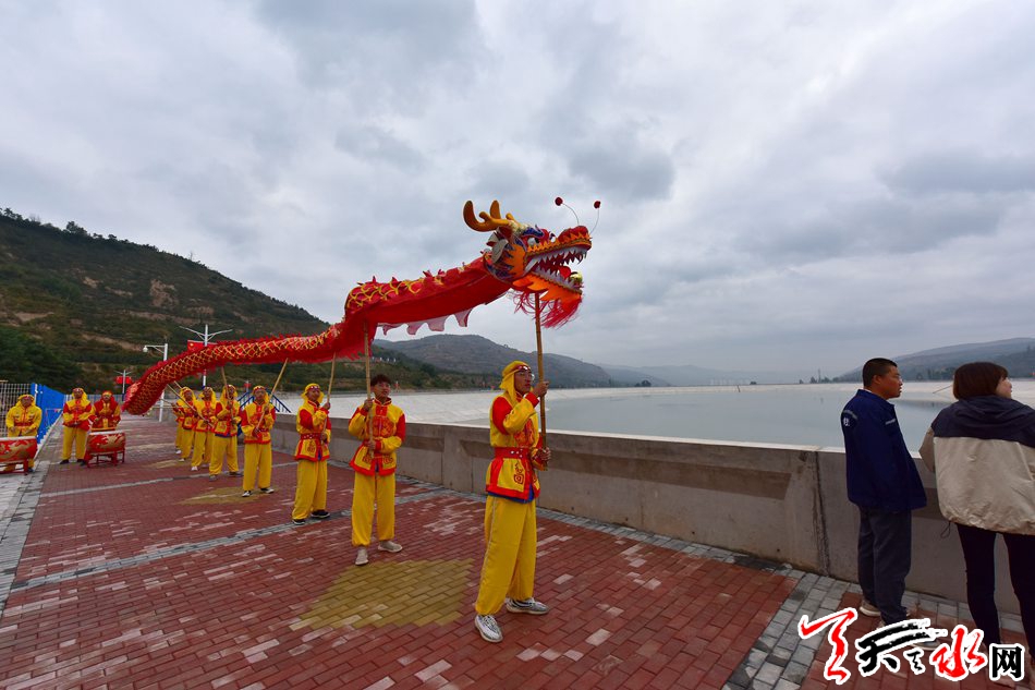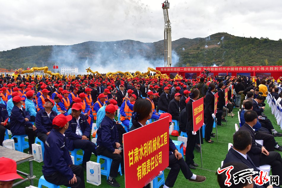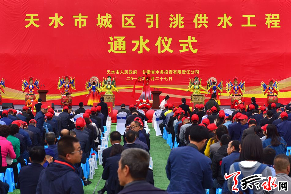 鼓乐喧天,人声鼎沸,受益群众欢笑着、舞动着,尽情表达自己心中的喜悦。这一天,多年来关心支持天水建设发展的省、市领导和老干部,受益区群众以及付出无数心血与汗水的建设者们欢聚一堂,共同见证圆梦时刻,为新中国70华诞隆重献礼。