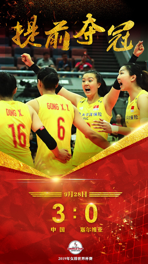 新华社快讯:中国女排夺得2019女排世界杯冠军!