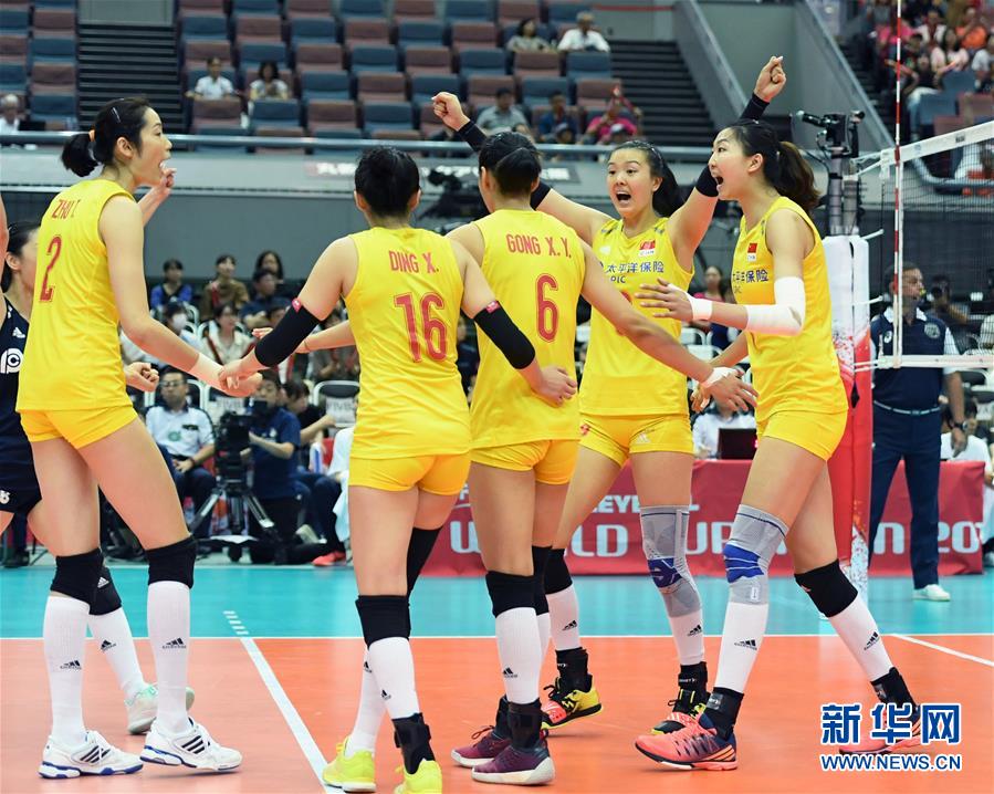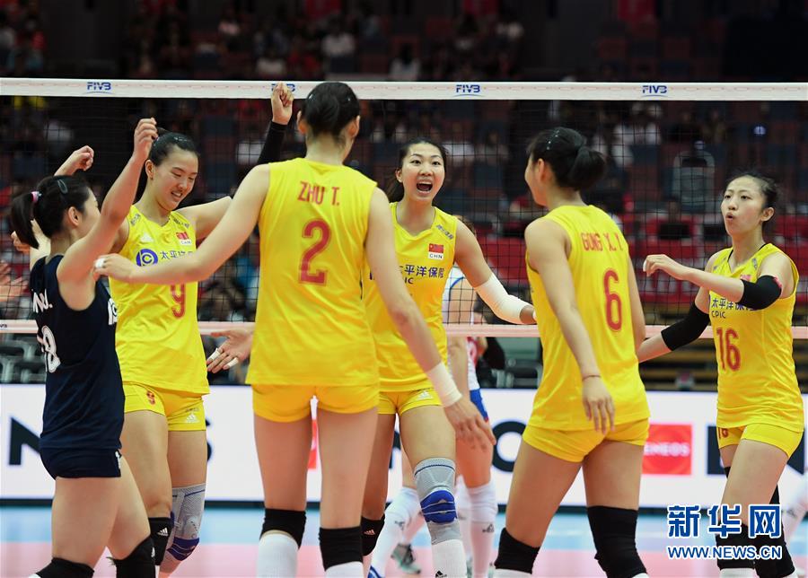 9月28日,中国队球员在比赛中庆祝得分。当日,在日本大阪举行的2019年女排世界杯赛第三阶段A组循环赛比赛中,中国队以3比0战胜塞尔维亚队。新华社发