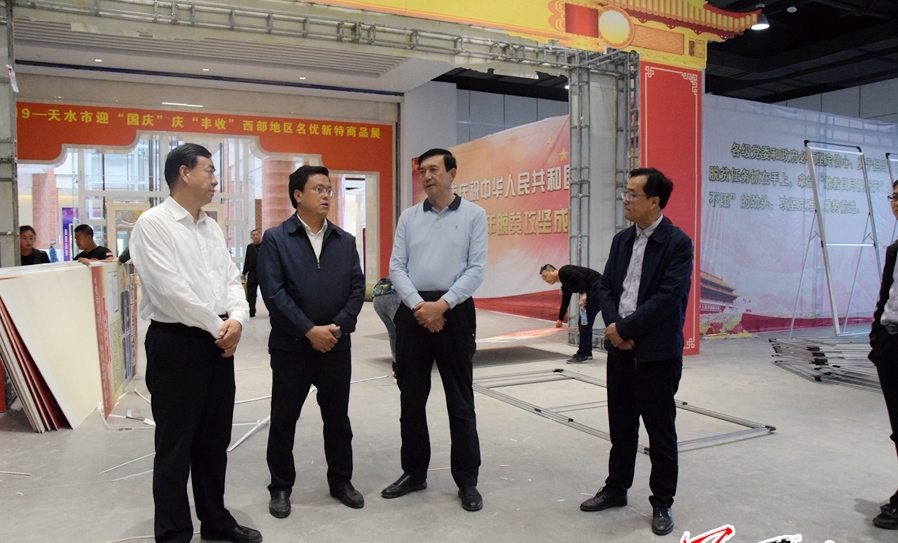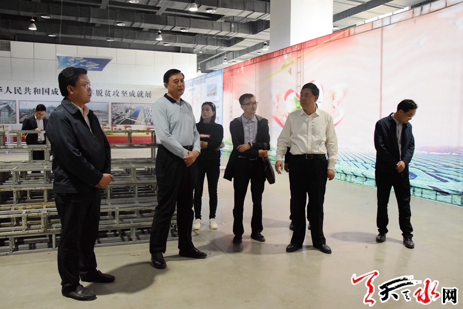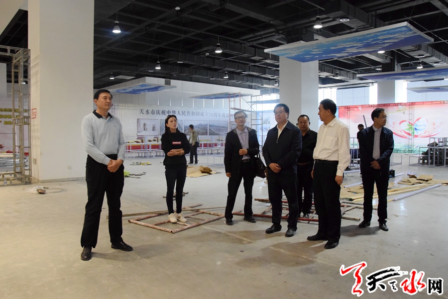 天天天水网讯【全媒体记者 王晓馨】9月28日,市领导赵卫东,副市长逯克宗来到天水会展中心,检查天水市庆祝中华人民共和国成立70周年脱贫攻坚成就展、经济社会发展成就展筹备和布展情况。