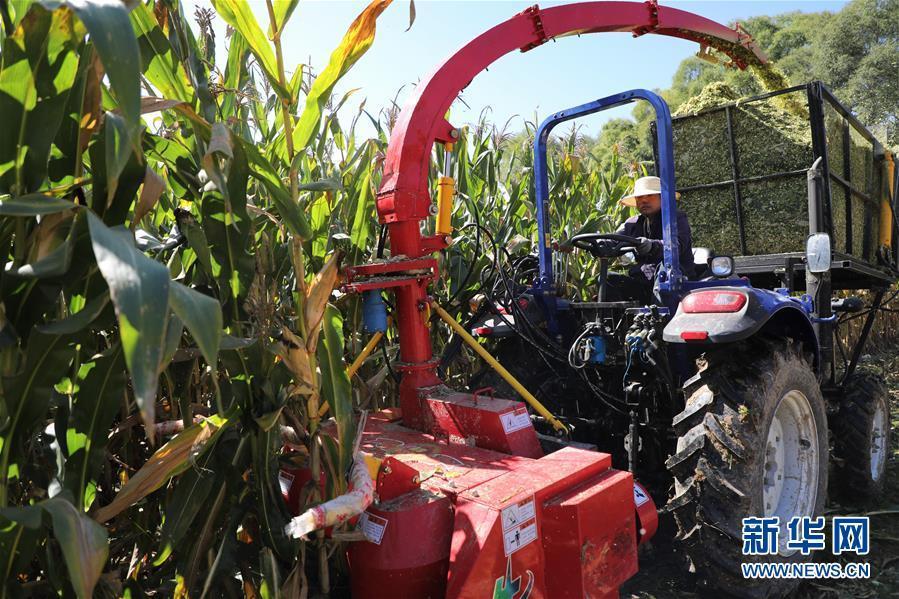 9月28日,一辆背负式青贮机在甘肃省临夏回族自治州广河县的玉米地里工作。甘肃省临夏回族自治州广河县是典型的旱作农业区,过去当地农民习惯种植籽实玉米,土地生产效率较低,农牧业进一步融合发展受限。 自从“粮改饲”项目实施以来,广河县将籽实玉米改种为全株青贮玉米,解决了农民以往养殖业优质饲草供给不足的问题,并避免玉米过剩,提高了秸秆的综合利用效率。当前“粮改饲”在广河县推广面积达20万亩,农民种养效益得到显著提升。 新华社记者 张睿 摄