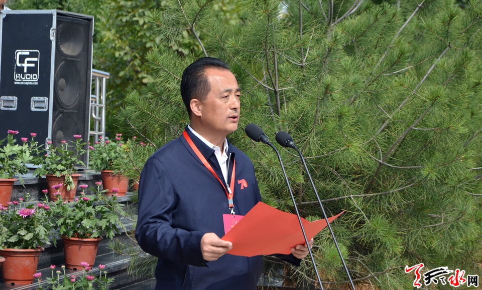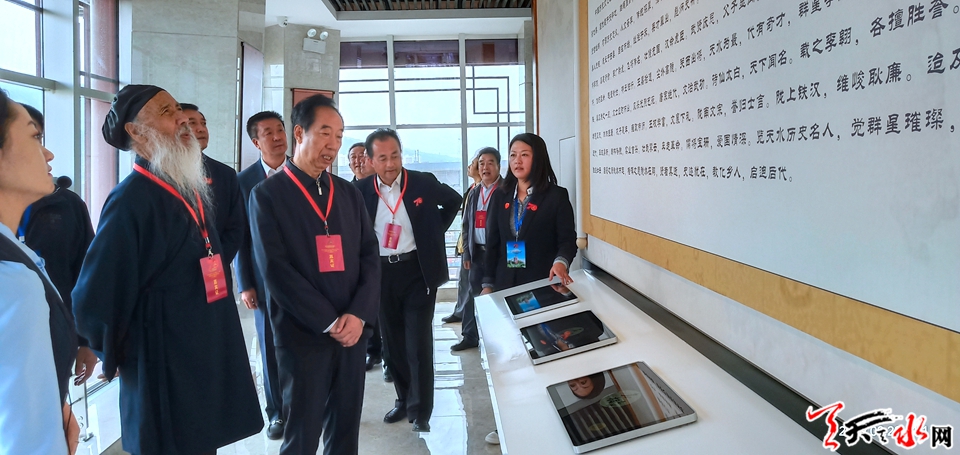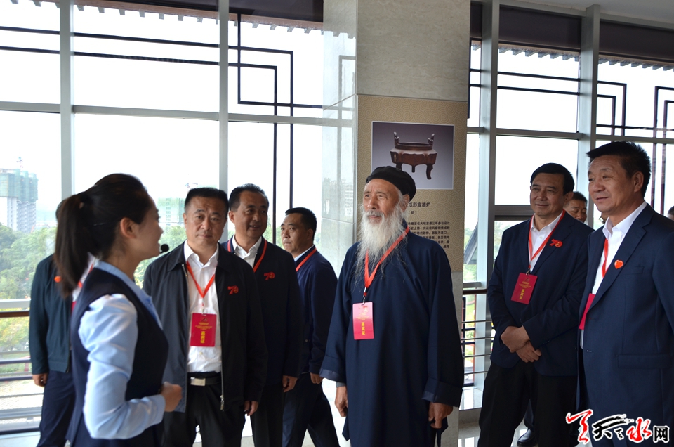 天天天水网讯【记者 张文都】9月29日,以“盛世华诞 、菊香麦积”为主题的大型菊花展开园暨马跑泉公园万人游园活动在麦积区马跑泉公园盛大启动。作为该项活动之一的“天一阁”揭牌开展仪式同时举行, 世界宗教和平会主席,原全国政协常委、国家民族宗教委员会副主任,前中国道教协会会长任法融,省人大常委会原副主任周多明,市人大常委会主任蒋晓强,市政协主席张明泰为“天一阁”开展揭牌,这标志着“天一阁”正式对外开放。