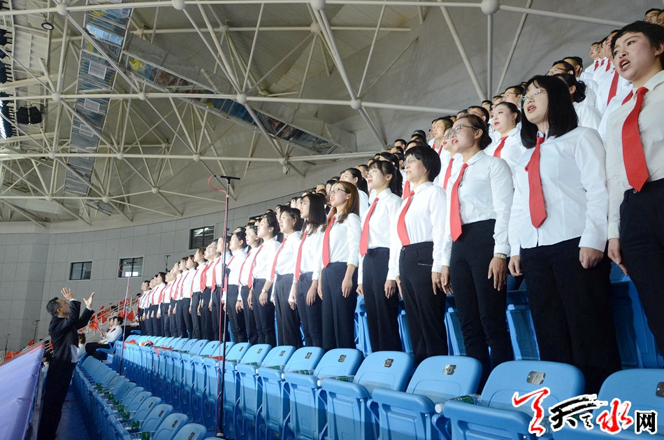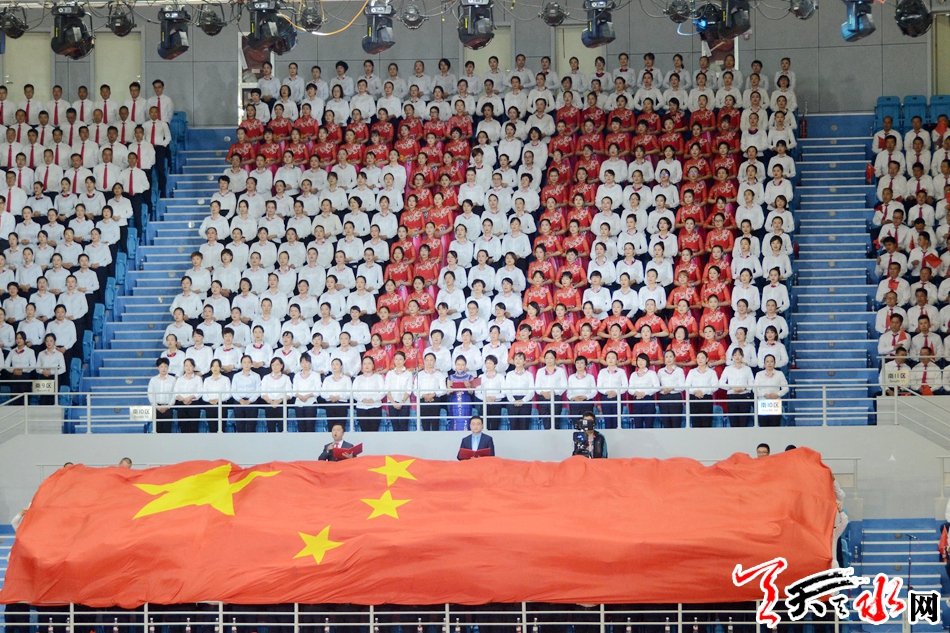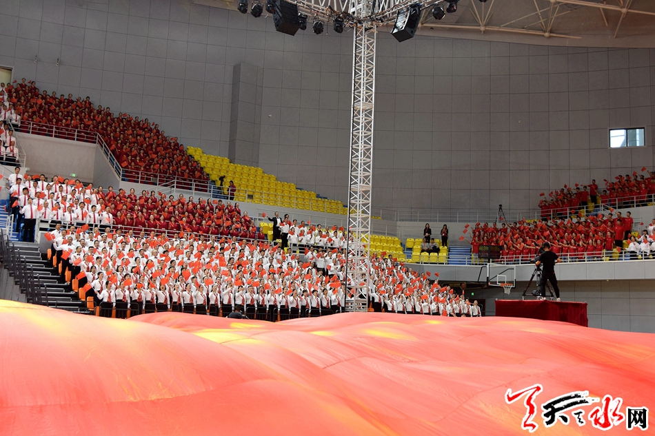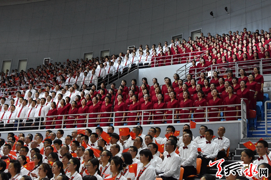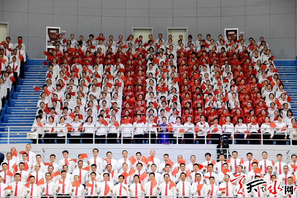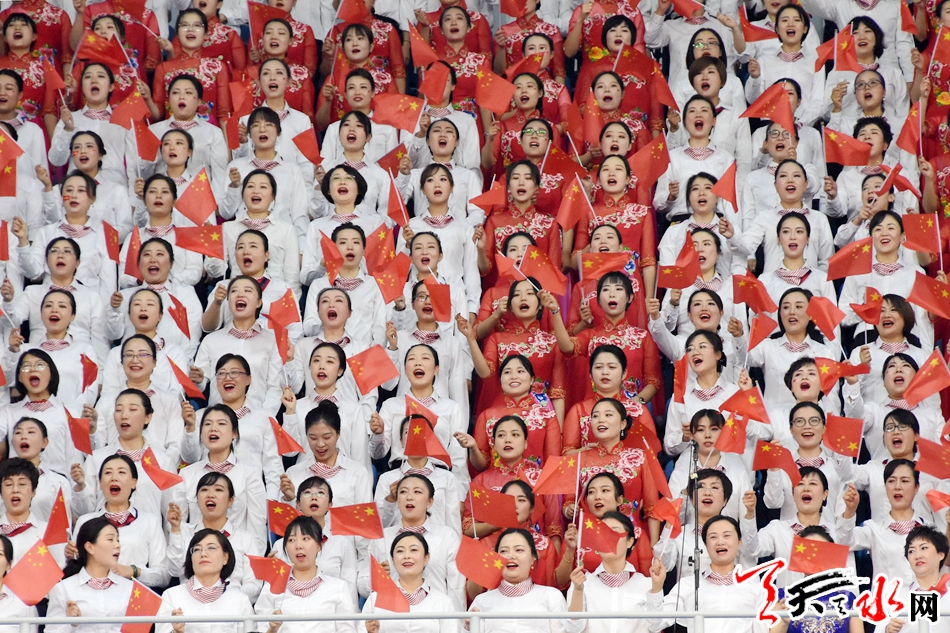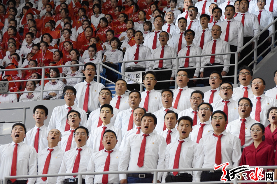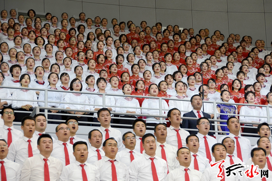 9月29日下午,市体育中心体育馆内歌声如潮,激情澎湃。由天水市委、市政府主办,市委宣传部、市总工会、市文化和旅游局、市体育局、天水广播电视台承办的天水市庆祝中华人民共和国成立70周年“歌唱祖国”合唱节在这里盛大举行。来自全市党政机关、企事业单位、高校及各行各业5000多人组成的18支合唱代表队,用嘹亮而充满激情的歌声,向新中国成立70周年表达最诚挚的祝福。