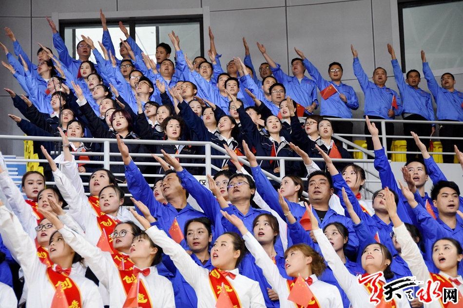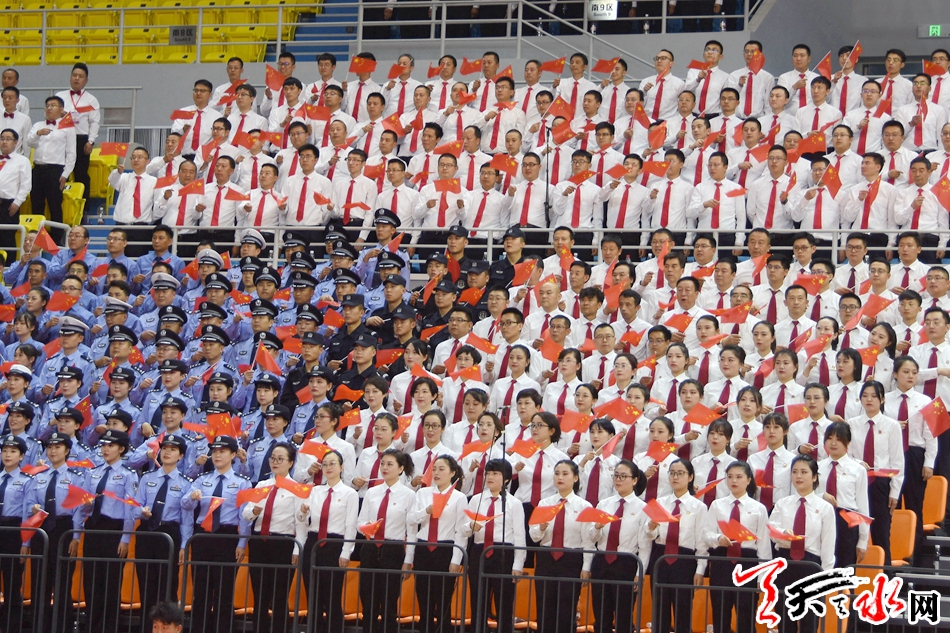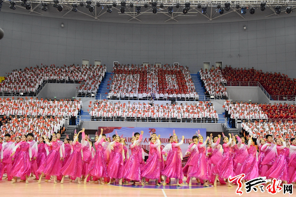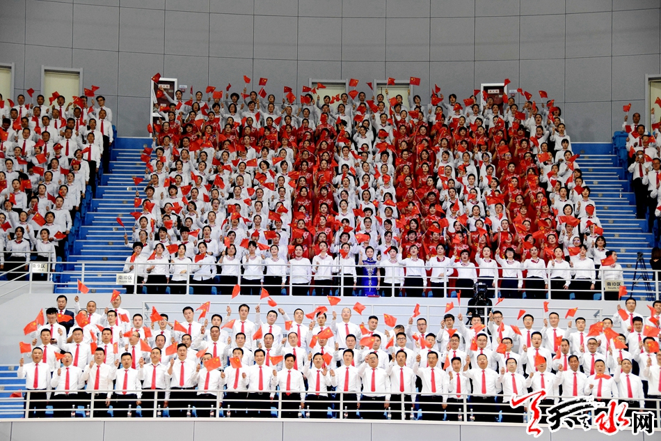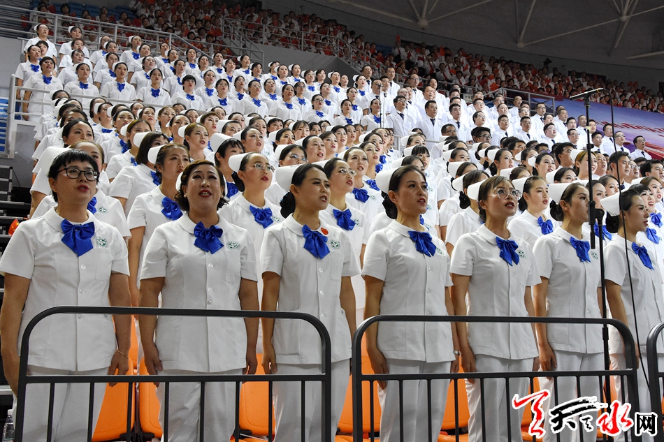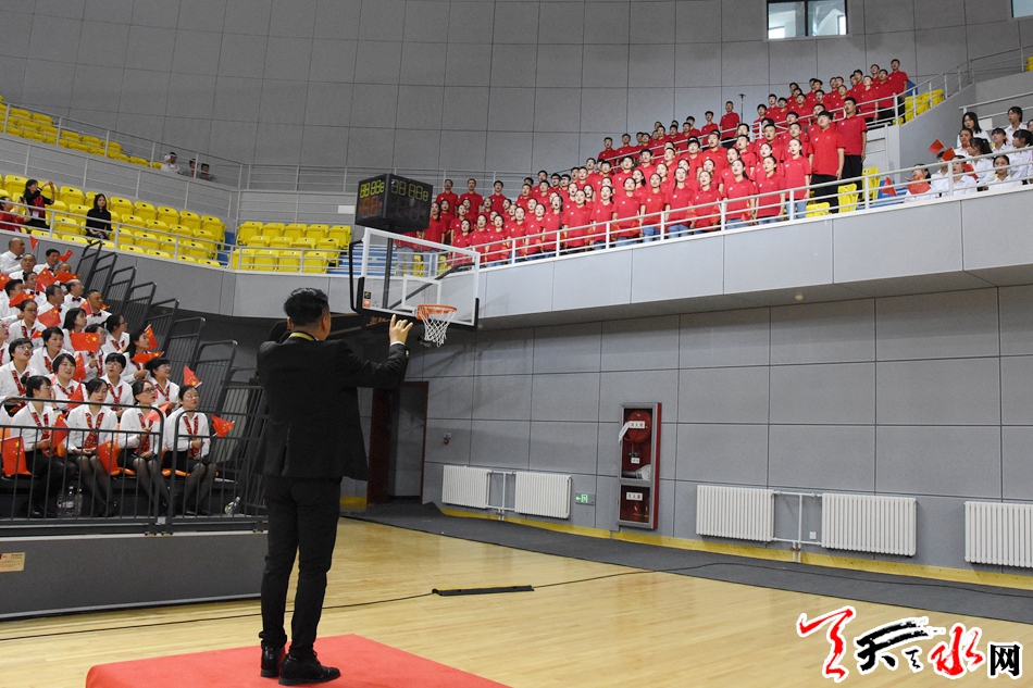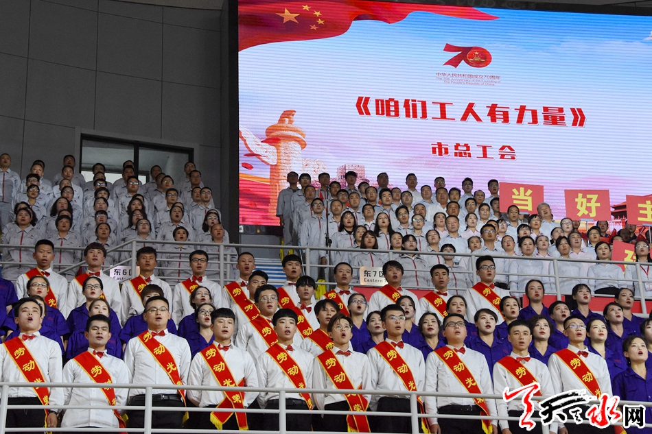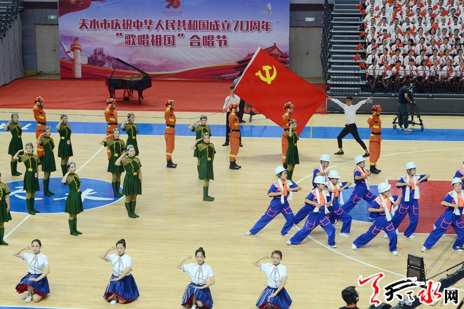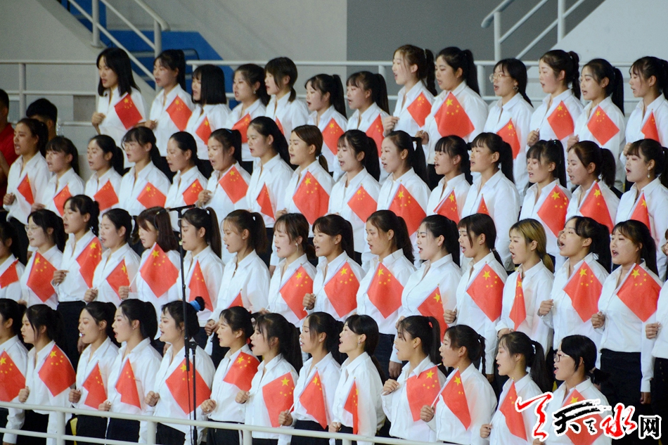 9月29日下午,市体育中心体育馆内歌声如潮,激情澎湃。由天水市委、市政府主办,市委宣传部、市总工会、市文化和旅游局、市体育局、天水广播电视台承办的天水市庆祝中华人民共和国成立70周年“歌唱祖国”合唱节在这里盛大举行。来自全市党政机关、企事业单位、高校及各行各业5000多人组成的18支合唱代表队,用嘹亮而充满激情的歌声,向新中国成立70周年表达最诚挚的祝福。