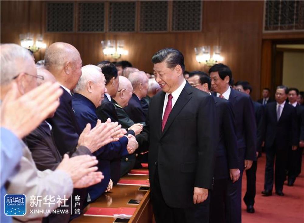 19时55分,在欢快的乐曲声中,习近平等领导同志步入大礼堂,同老同志代表亲切握手,向他们致以崇高敬意,全场响起热烈掌声。