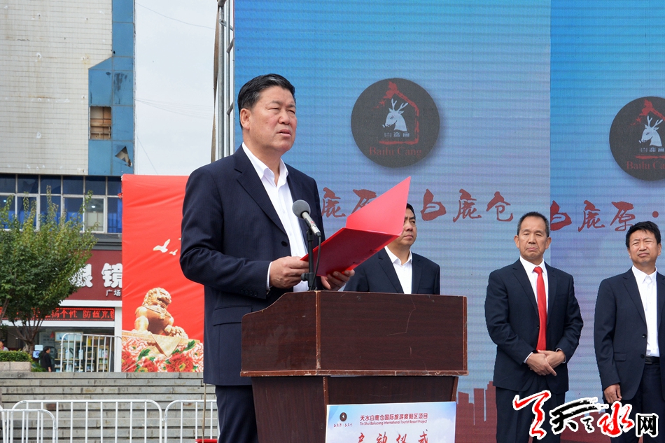 9月26日,我市重点招商引资和大型文化旅游项目——天水·白鹿仓国际旅游度假区项目正式启动实施,启动仪式在龙城广场举行。当日,市委书记王锐宣布天水·白鹿仓国际旅游度假区项目启动开工。