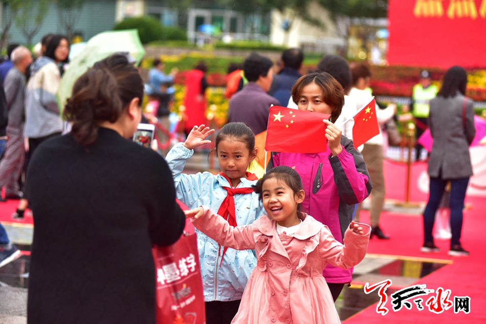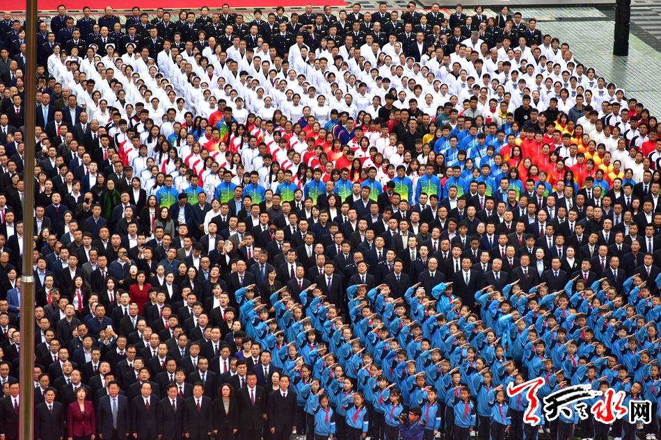 天水军分区和秦州区主要负责同志,市直机关干部职工代表,市教育、卫生、文化旅游、农业、市场监管系统干部职工代表,工人代表,天水师范学院及市属学校中小学生代表,秦州区党政机关及街道社区、群众代表共2600多人参加了升国旗仪式。