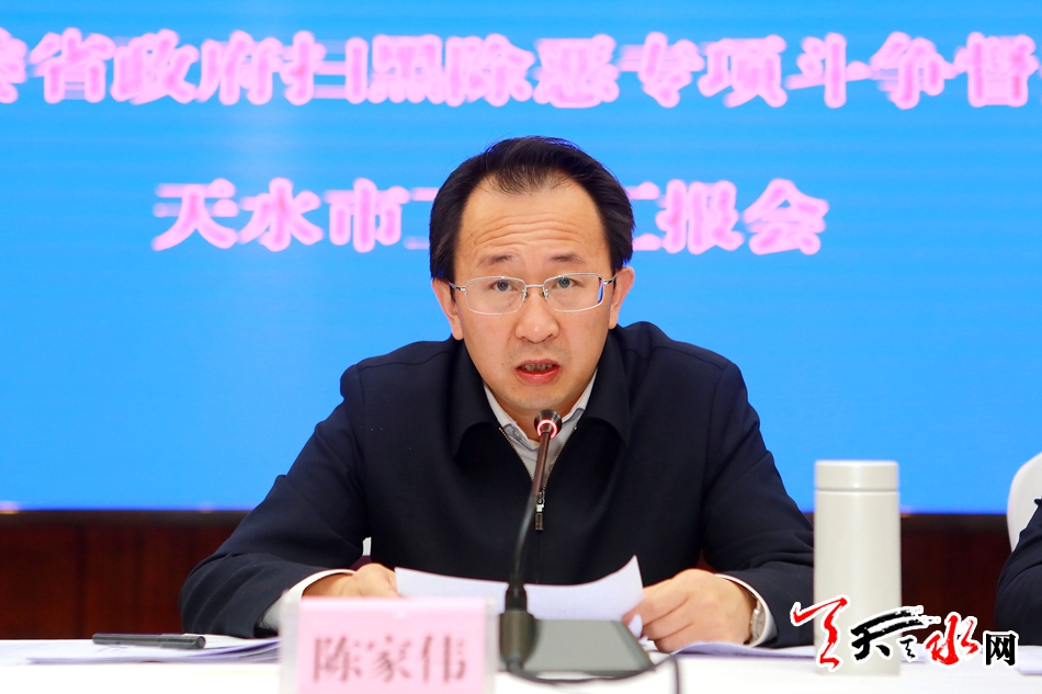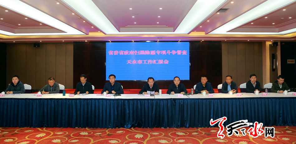 天天天水网讯【全媒体记者吴丽娜】10月10日上午,省政府督查专员、省委省政府扫黑除恶专项斗争第五督查组组长陈家伟主持召开省委省政府扫黑除恶专项斗争督查天水市工作汇报会,对省委省政府扫黑除恶专项斗争专项督查组在我市督查期间相关工作进行对接安排。市委副书记、市长王军就我市扫黑除恶专项斗争进展情况作了汇报。