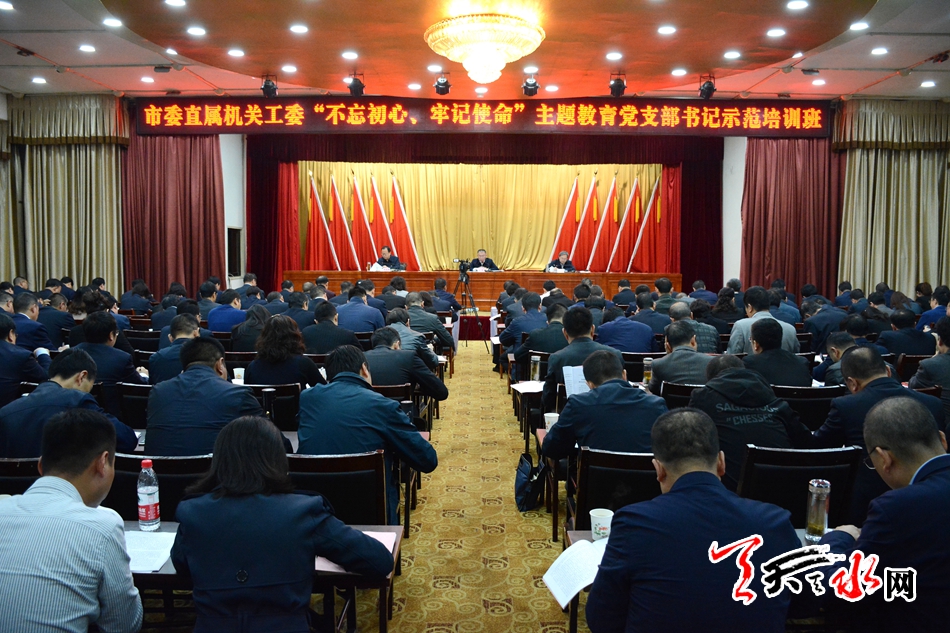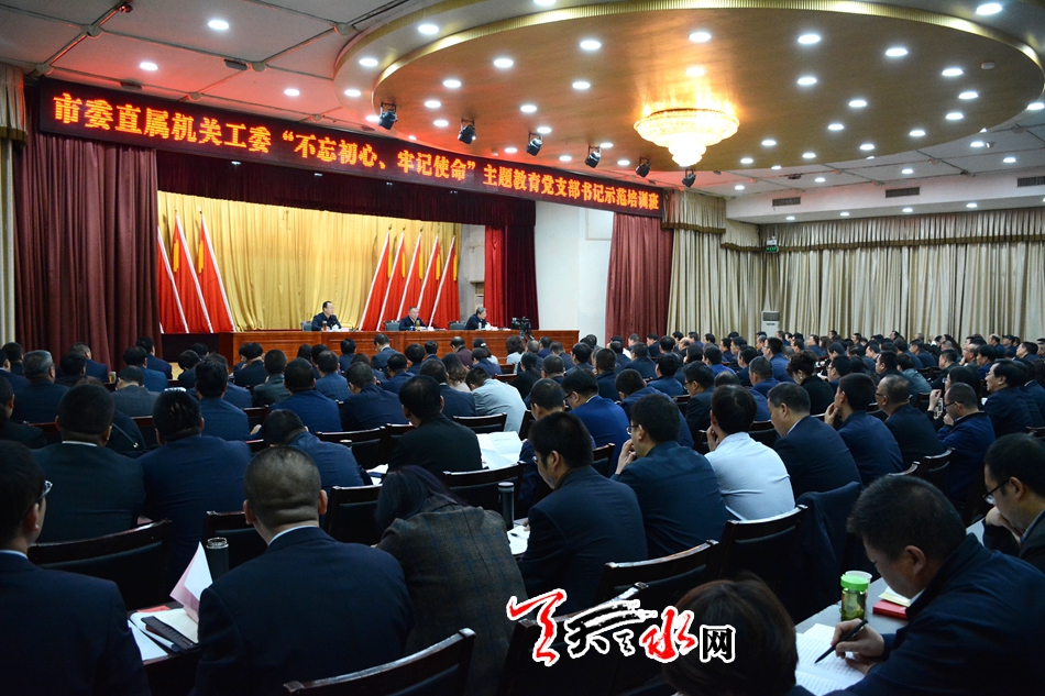 天天天水网讯【全媒体记者郝勤学】10月10日,市委直属机关工委“不忘初心、牢记使命”主题教育党支部书记示范培训班在市迎宾馆开班。市委书记王锐带头讲党课,作了题为《牢记初心使命、聚焦职责定位,着力推动机关党的建设高质量发展》的专题辅导。