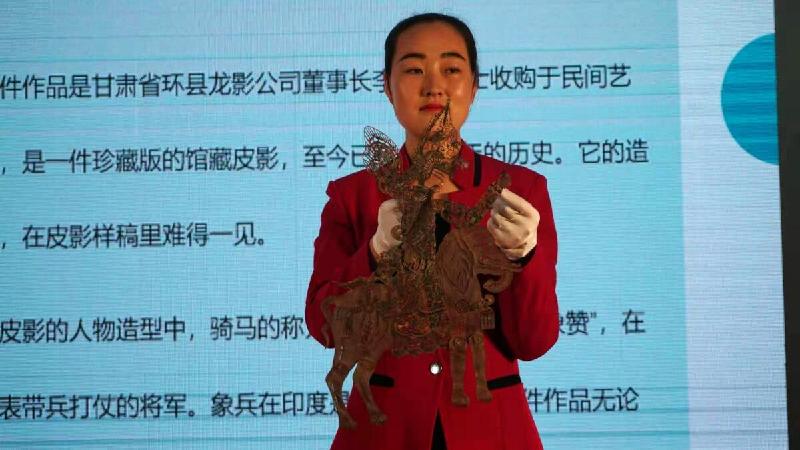 此次公益拍卖标的分别是环县和镇原的《珍藏版皮影—象赞》《精品皮影—闻太师 》《折叠式装—皇帝出巡 》《折叠式装—昭君出塞》《折叠式装—四大美女 》《庆阳四大文化之“周祖农耕”“岐黄文化”“民俗庆阳”“红色南梁”》《陇原农耕图》《美丽乡村主题剪纸》《庆祝新中国成立70周年》皮影、剪纸10件手工艺品。