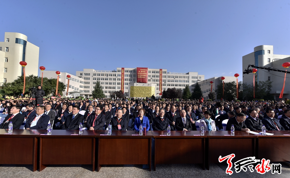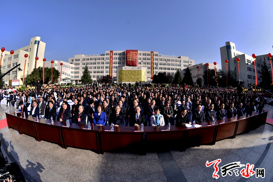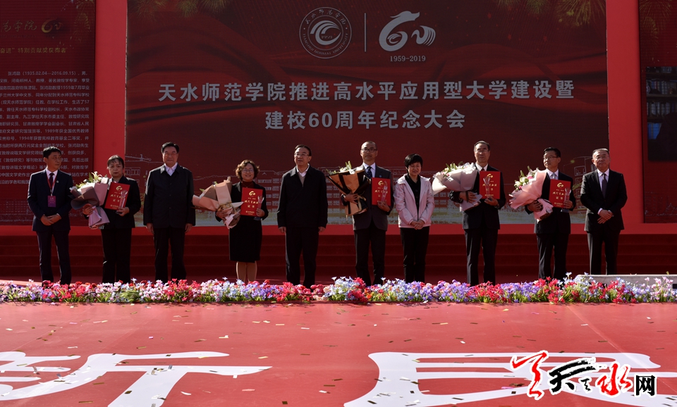天天天水网讯【全媒体记者郝勤学 周文涛 何永德 杨旭】六十载守正奋进,一甲子春华秋实。10月12日上午,天水师范学院推进高水平应用型大学建设暨建校60周年纪念大会在天水师范学院文化广场隆重举行。